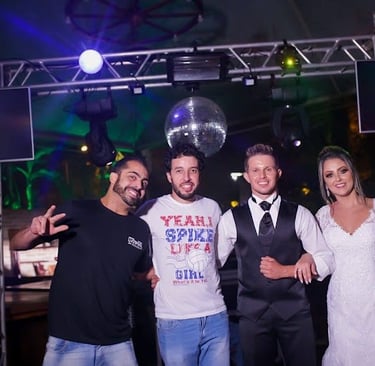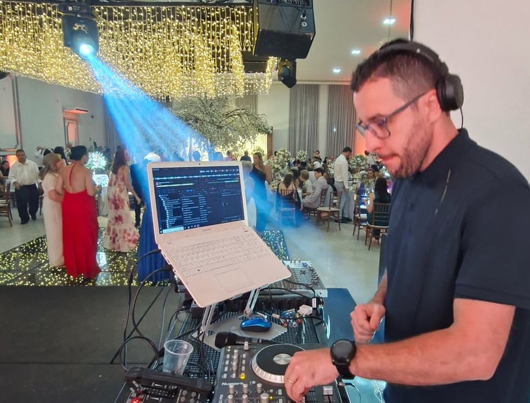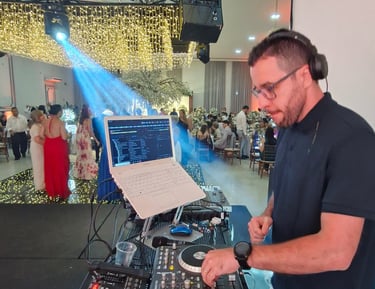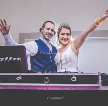 DJ Dimas é especialista em casamentos, com mais de 11 anos de experiência em cerimônias, recepções e festas. Cada evento é planejado com atenção aos detalhes, respeito à história dos noivos e repertório personalizado.